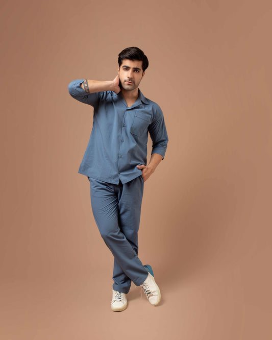 Blue Texture Men Co-ord Set